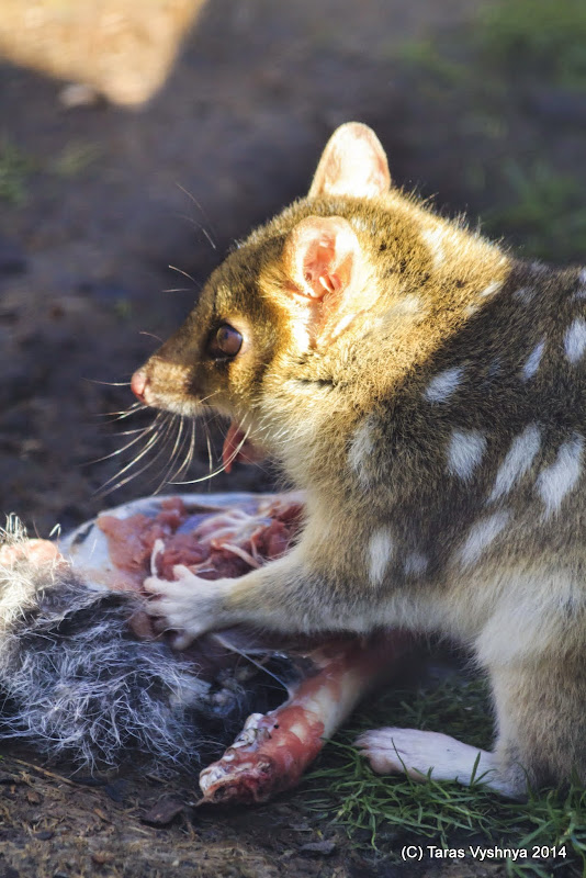 Однако, кроме Дьяволов на Тасмании также водятся их менее суровые родственники - Quoll (Куолл). Эти голубушки даже несколько похожи на привычных нам хищников семейства кошачьих, вроде норки. Хотя тоже являются сумчатыми, и очень челюстеразвитыми.