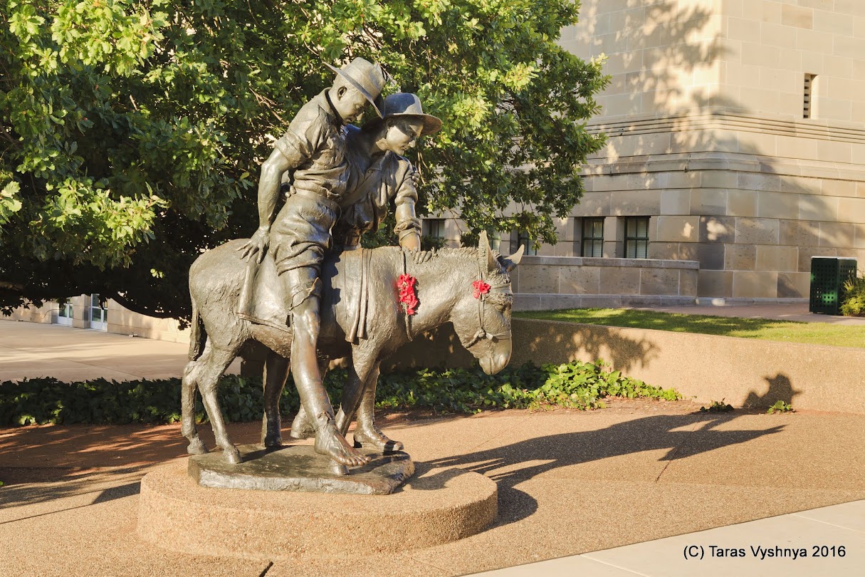 Бегло увидевфотографию этого памятница, подумалось что это еще за Дон Кихот и Санчо Панса в этих местах. В реальности же все стало на свои места. Это австралийские диггеры (пехотинцы) в Турецкой местности Галиполи, где в первую мировую участвовал Австралийско-Новозеландский корпус АНЗАК. На ослике и раненые.
