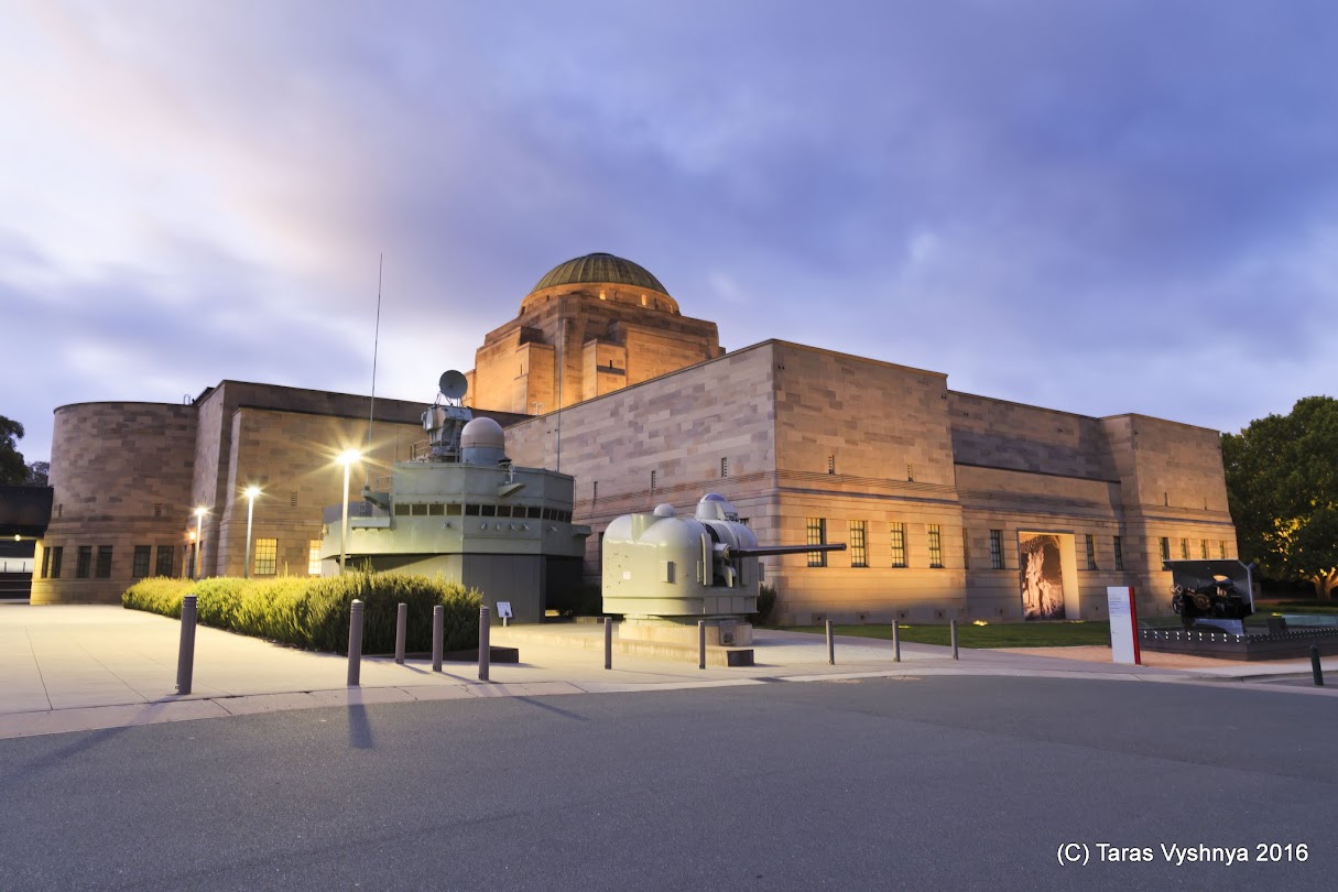 Перемещаемся в военный музей-мемориал в Канберре, который также национальный , является музеем и мемориалом. Canberra War Memorial. В первый день мы до него добрались только через десять минут после закрытия, когда толпа людей вывалислась на прилегающую площадку.