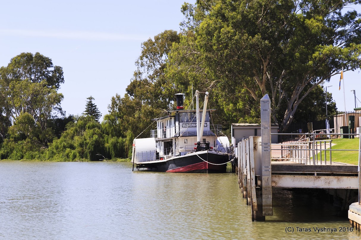 После сельских просторов добираемся до городка на реке - Ренмарк. У него уже есть приличная набережная, ухоженный парк, пришвартованный исторический пароход.